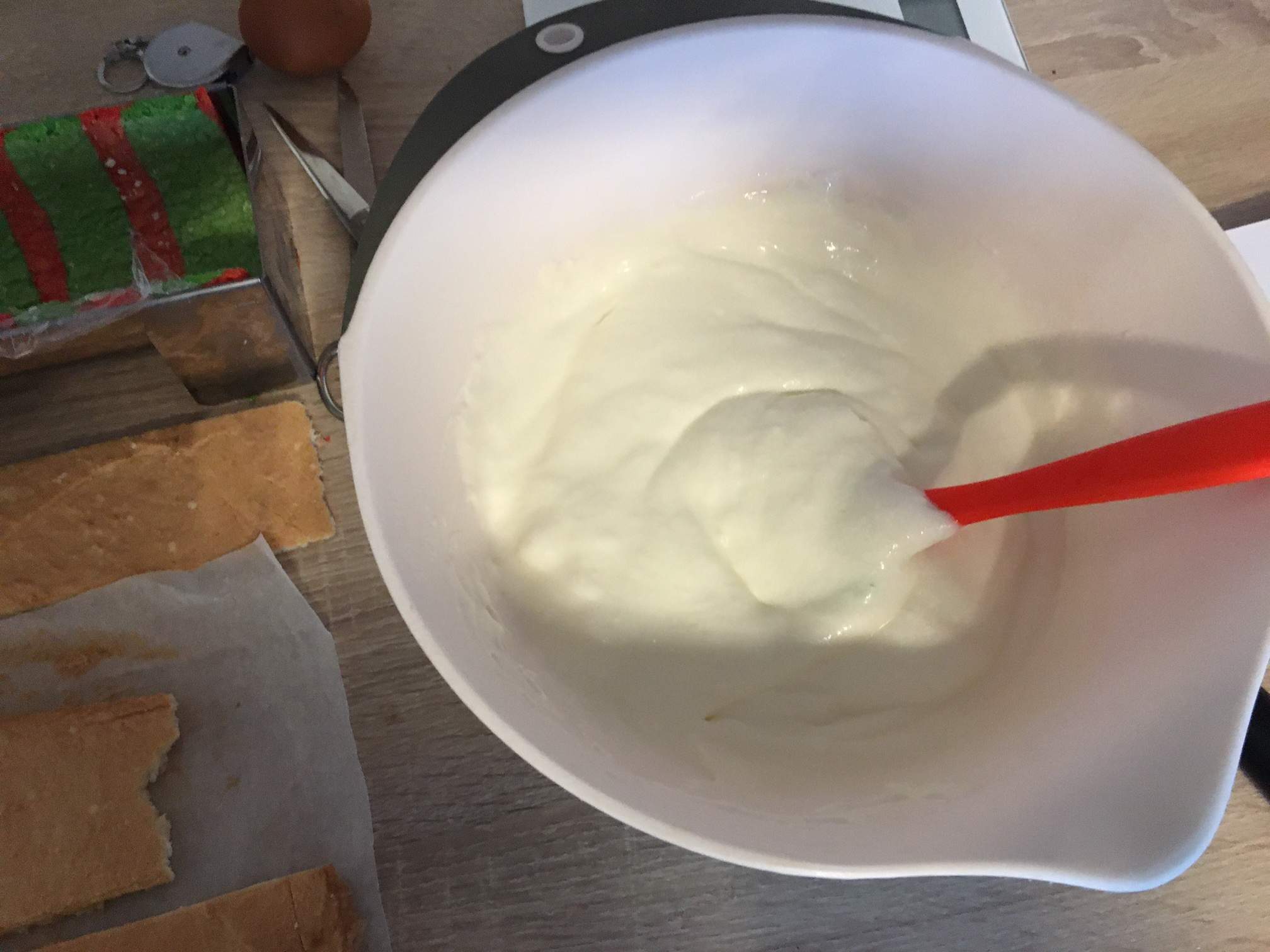 Le jour J Le biscuit cuillère Battre les blancs en neige en rajoutant le sucre Incorporer les jaunes et ensuite la farine Pocher à la douille plate 'chemin de fer' Cuire à 180° pendant 8 minutes Le biscuit citron Battre les blancs en neige en rajoutant le sucre Incorporer ensuite les poudres Etaler sur 1 Cm d'paisseur et cuire à 180° pendnat 15 minutes ( surveiller...)