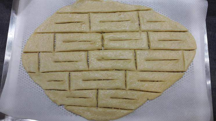 Abaisser la pâte sur une épaisseur de 5 mm. Détailler
