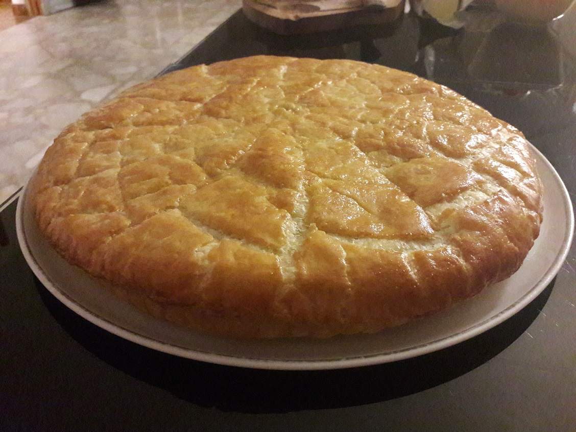 Pour une galette de 28cm 375g de farine T45 6 g de sel 185g d'eau 250 g de beurre Laisser la pate feuilletée en carré et decouper le cercle une fois le dessus soudé au dessous (Donc pas comme en dessous...) Scarifier avec le dos d'un couteau mais plus profondement: Cuire à 200°c pendant 10 minutes puis 30 minutes à 180°C