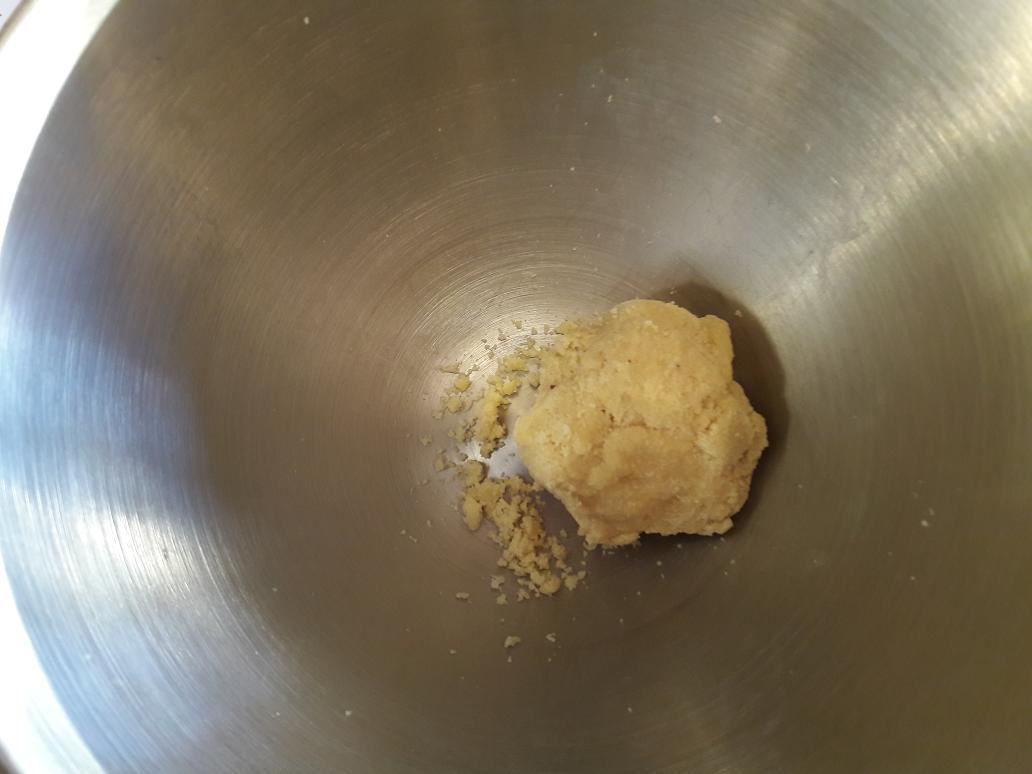 52g de beurre Battre le beurre avec la cassonade, ajoutez la poudre de noisette, une pincée de sel puis la farine. Étalez dans un cercle de 16 cm. Cuire 15 minutes à 160°C.