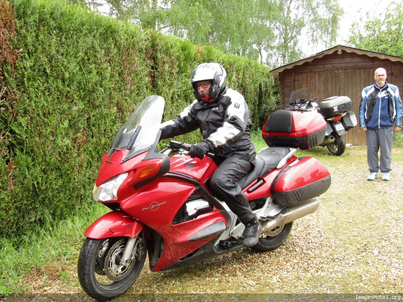 Départ pour le resto du dimanche midi. On se prépare pour une heure de roulage sous le flotte   ;)