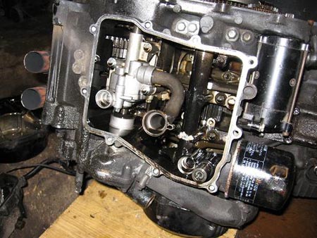 It's possible to "upgrade" a VF1000Re (or a VF1000F) by replacing the single pump with a double one with the corresponding oil pan from an VF1000Rf (or VF1000Rg / VF1000FII / VF1000Fg). After you will have to adapt an oil radiator from a VF1000Rf or from an other motorbike. Single oil pump and double one: In the oil housing: