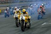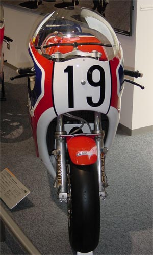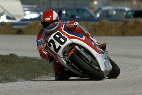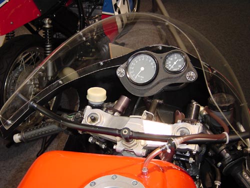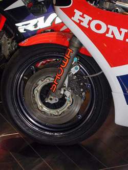 First one, the FWS1000 in1982, build to race the TTF1 champion ship, won first by Mike Baldwin and the year after by Steve wise. 1024cc, 150Hp at 11000Rpm and 10.6Kgm at 9000Rpm for only165Kg. Timing by gears, 5 speeds. The other name of this bike was RS1000RW or"the Water Whale"....