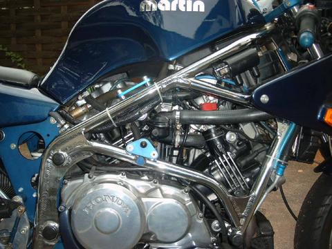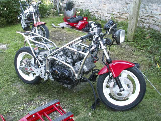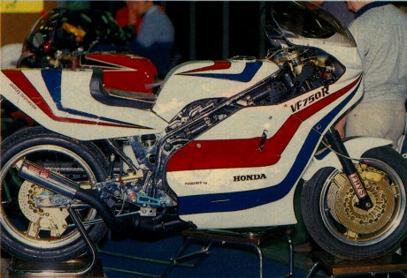 Une dizaine de motos a été produite avec des moteurs de VF750F : Une qui roule encore mais avec un moteur de VF750R a priori vu le carter d'embrayage : Et une refabrication allemande (à la couleur, on le savait d'entrée !!) : Une autre magnifique d'Allemagne :