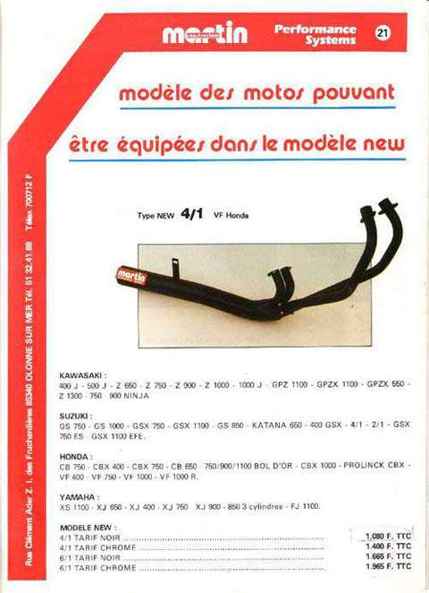 Et la pub d'époque avec les échappements et carénages pour VF :