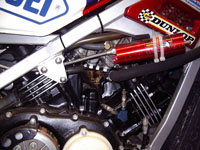 Mike Baldwin : Quelques détails sur ces motos (cliquez pour agrandir) : Modifs visibles : radiateurs latéraux, circulation d'huile modifiée, mais même pas de carbu racing... D'autres photos de Daytona ICI