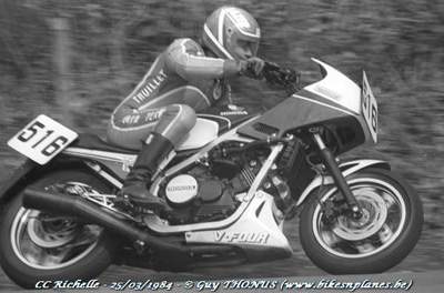 (Merci au site http://www.bikesnplanes.be) Mais la VF750F est toujours utilisée en course sur route, ici la moto de JOEP: Et avec une nouvelle peinture: Cliquez pour agrandir